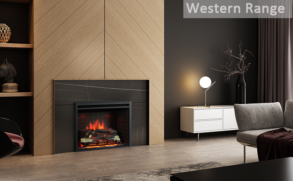 • PuraFlame Western Electric Fireplace Insert with Fire Crackling Sound, Remote Control, 750/1500W, Black, 22 53/64 Inches Wide, 20 3/64 Inches High